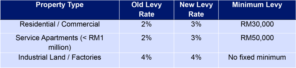 • Factor in RM50,000 minimum levy for serviced apartments below RM1 million