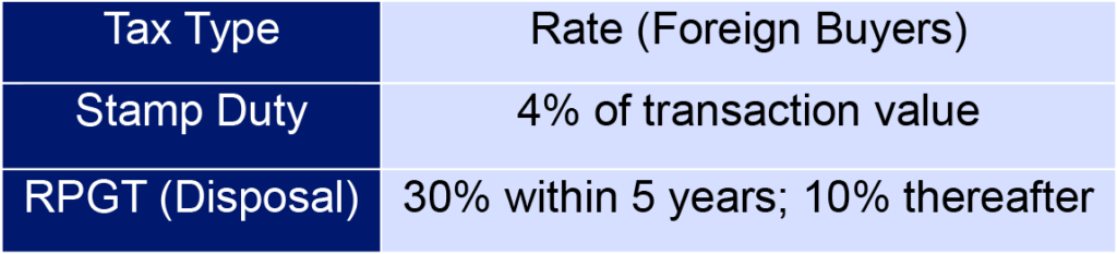 Foreigner Stamp Duty and Real Property Gains Tax (RPGT)